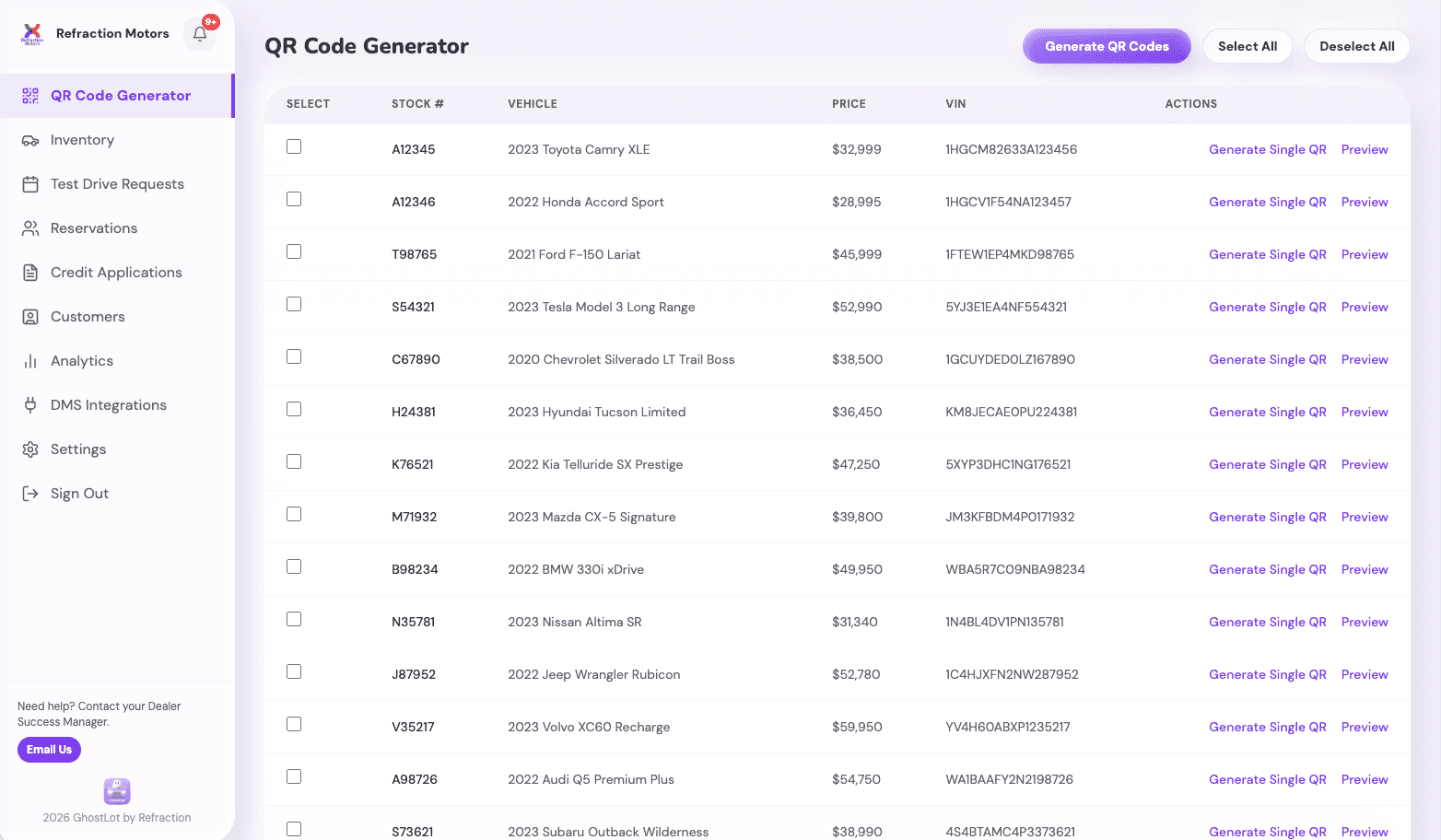 Get your dealership set up in minutes. Import your inventory, generate QR codes, and start capturing leads today.